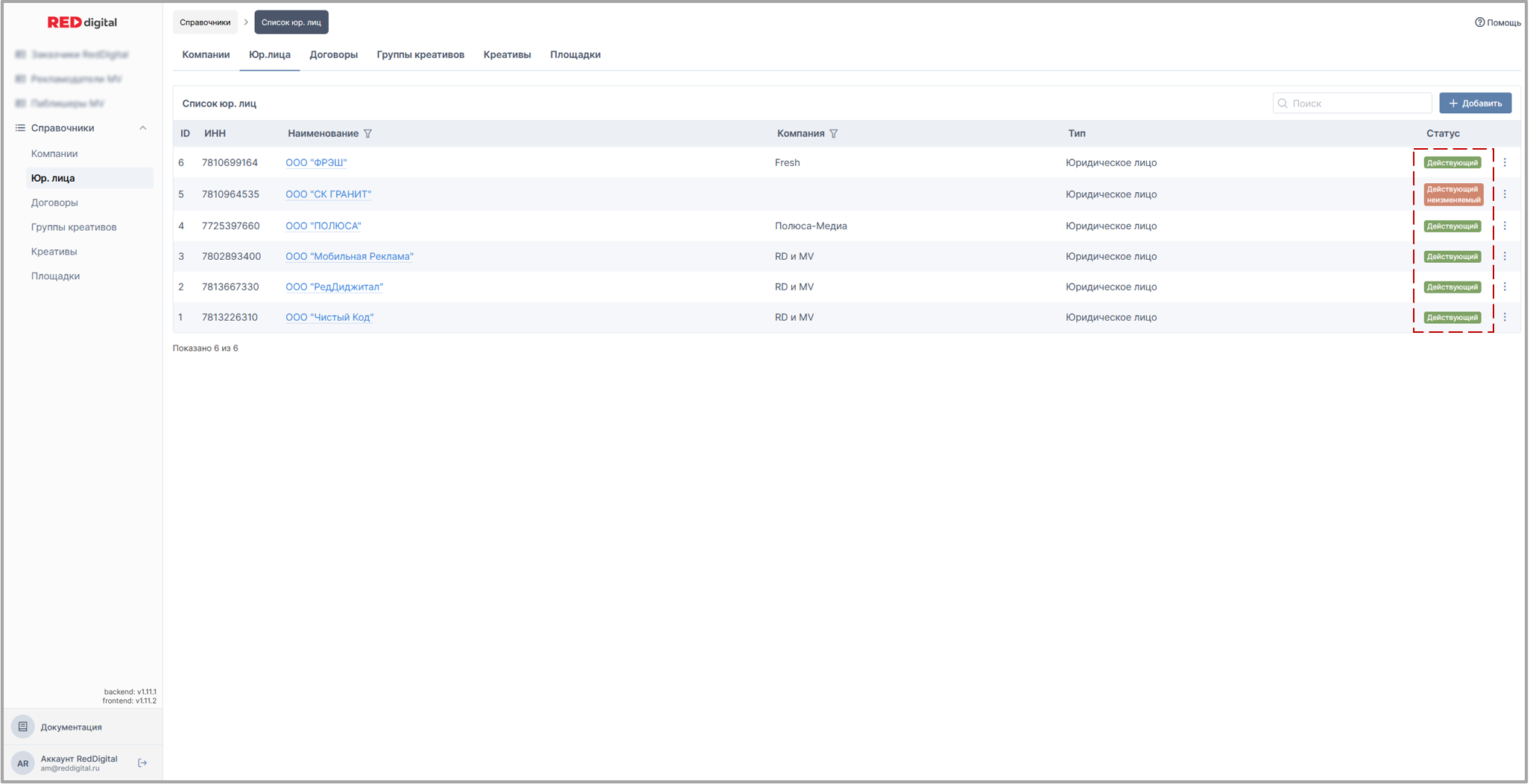 ✅ Юридические лица: