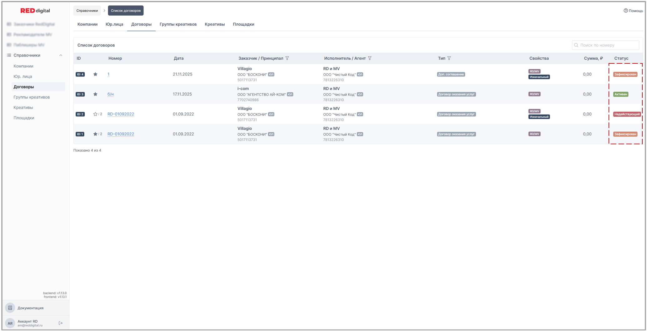 Статусы - это небольшие элементы пользовательского интерфейса несущие краткую информации о актуальности юридических лиц и договоров.