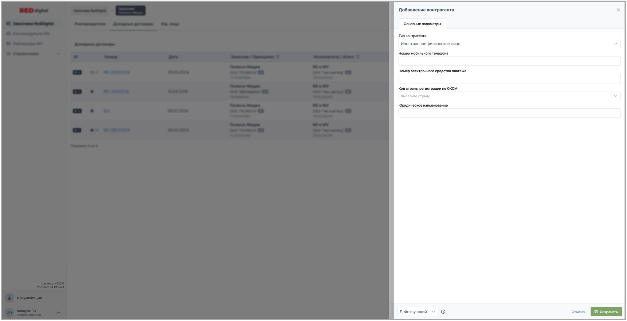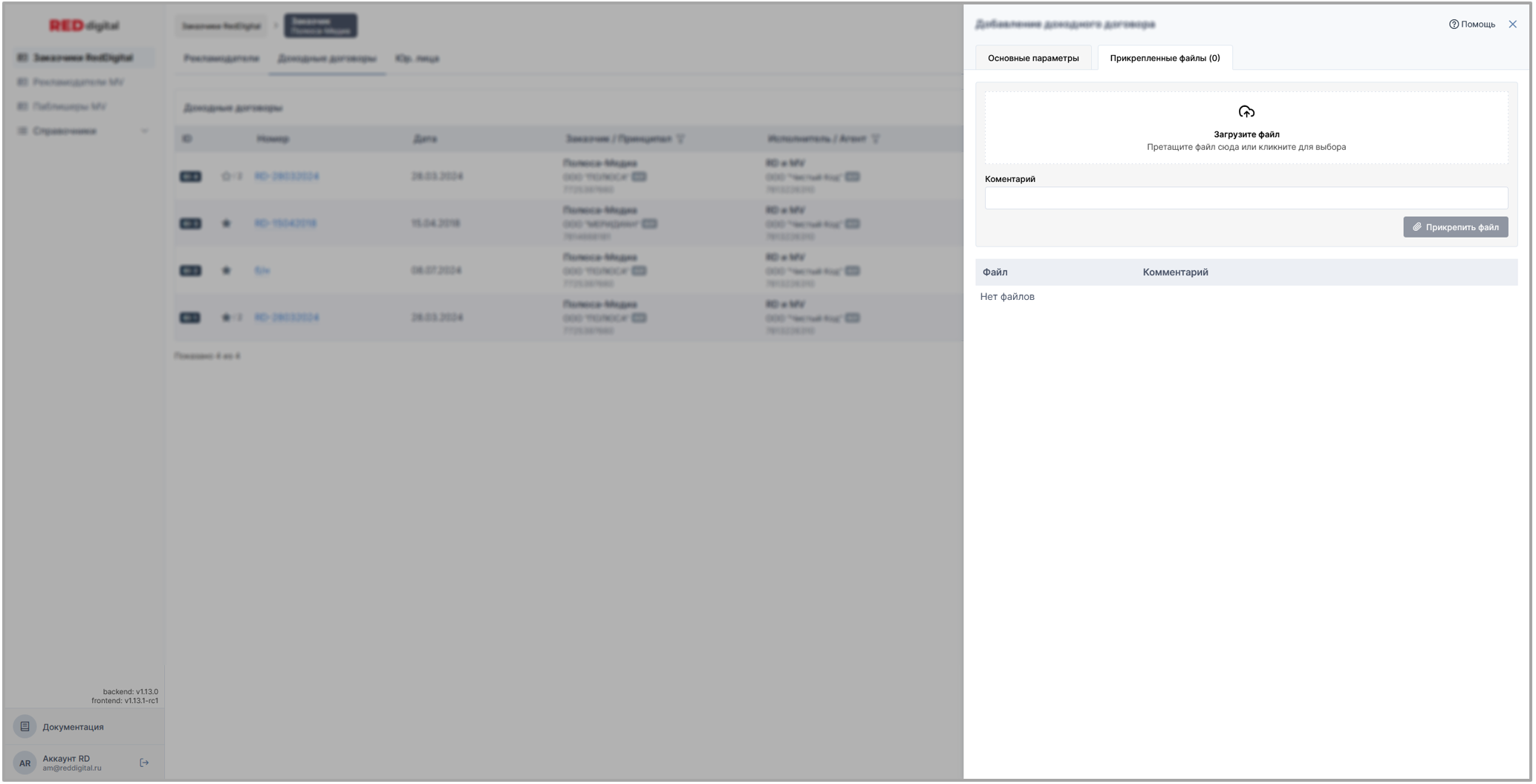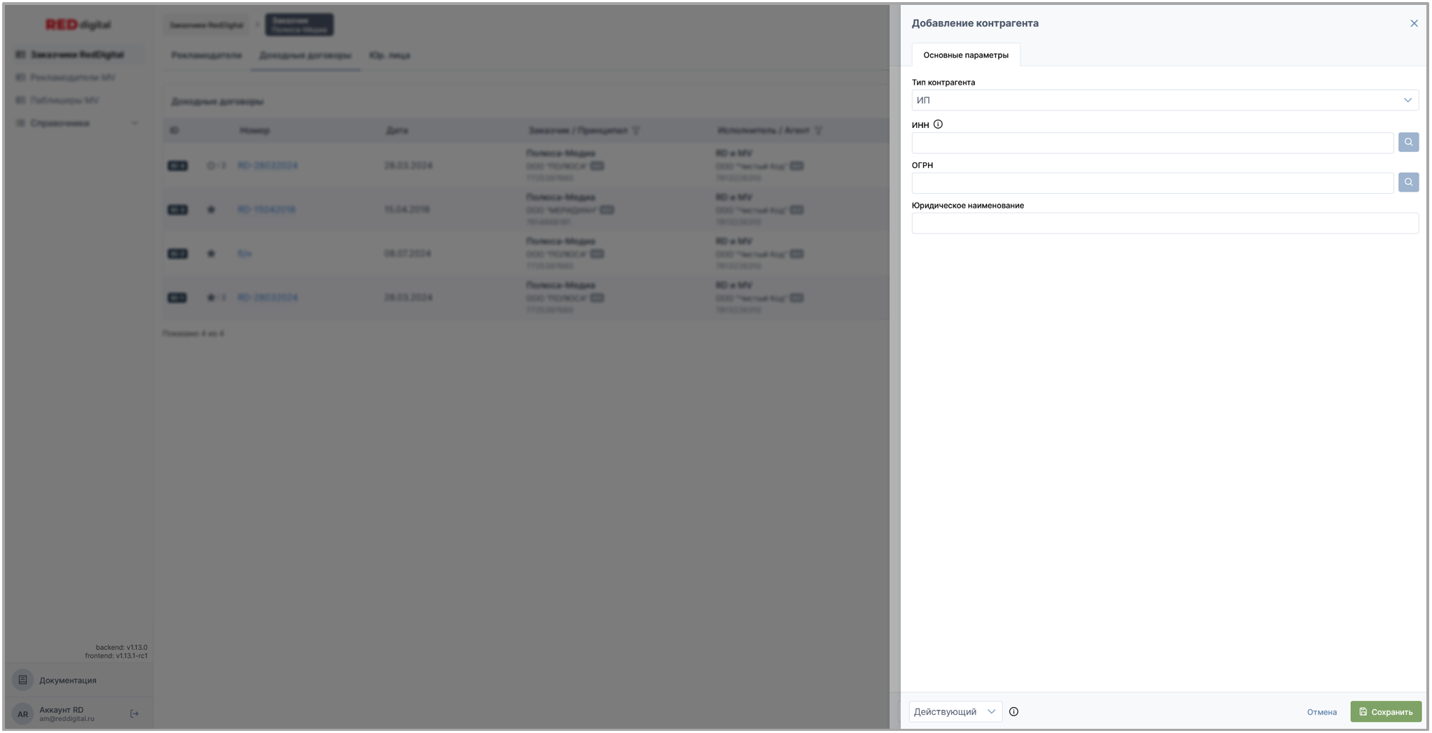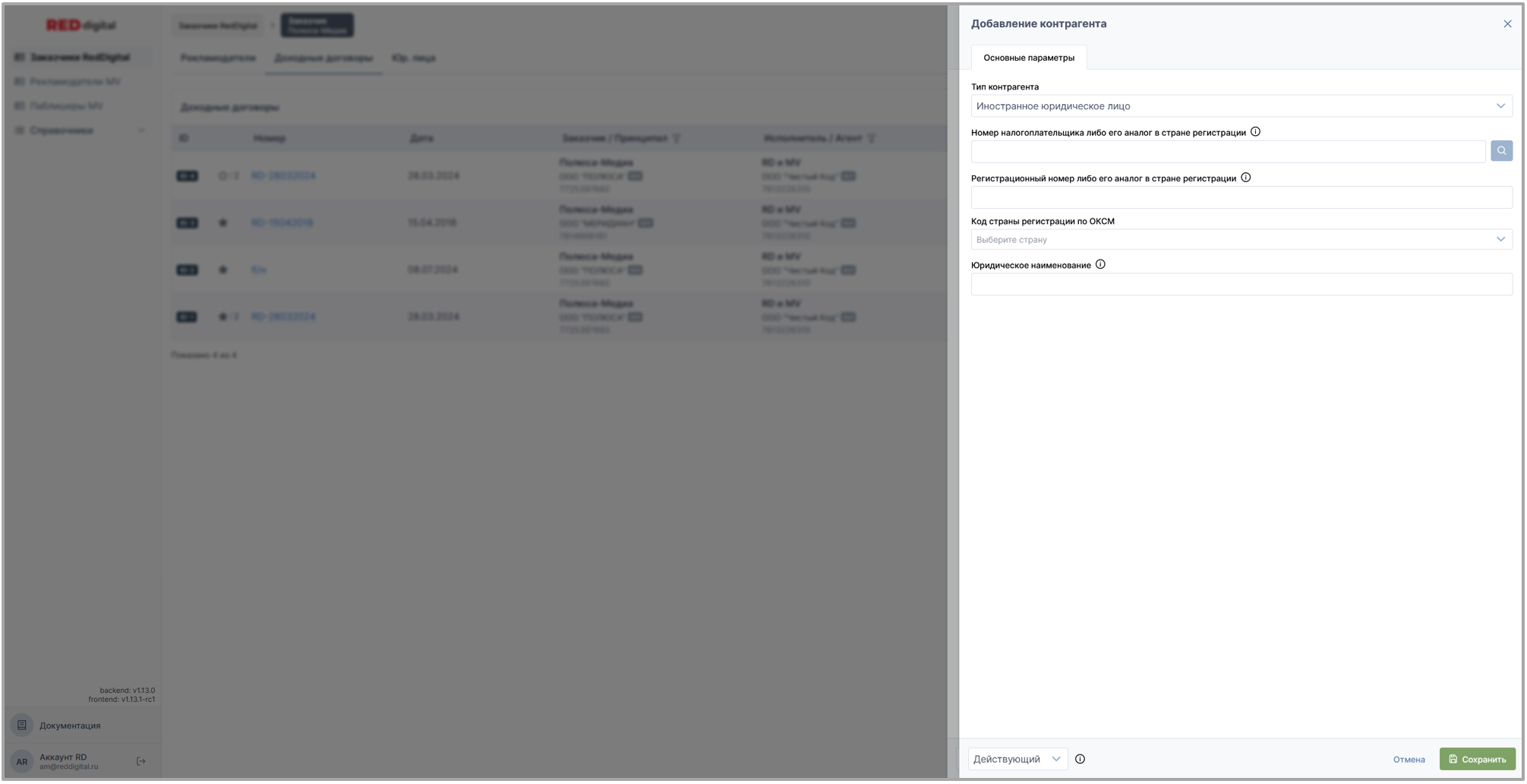 • Раздел Заказчики Red Digital: доходные и доходые (изначальные) договоры